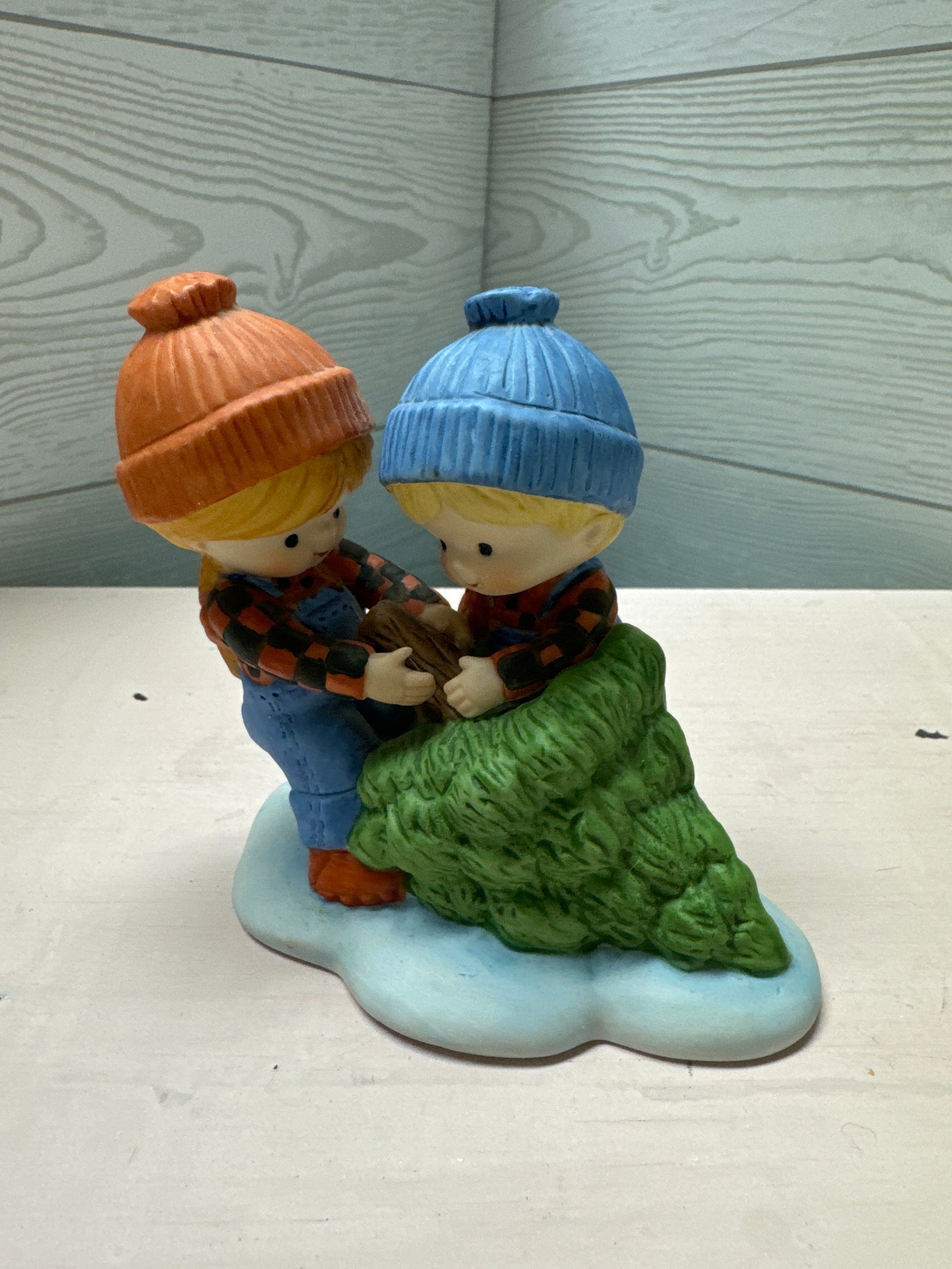 Enesco country cousins Vintage 1980 Katie and Scooter bringing home the Christmas tree. This is an excellent condition. There are no chips, cracks or paint missing.